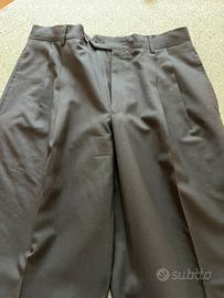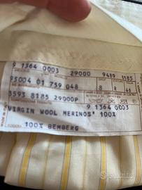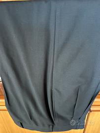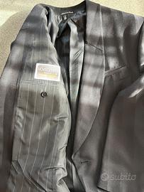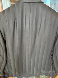 Abito da cerimonia in lana merinos 100% nero con giacchino corto con righe alternate lucide e opache e pantalone nero con pinces tg 46