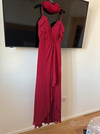 L'abito in chiffon a trapezio presenta una scollatura a cuore su un corpetto arricciato in modo asimmetrico e maniche a spalle scoperte. Acquistato a fine Maggio 2025 per una cerimonia - mai indossato, ancora con l etichetta - taglia 42 - bustino del vestito con coppe leggermente imbottite- comprato in atelier di Abiti sa Sposa - per Info contattami - prezzo esposto ridotto del 50 % sul prezzo di acquisto