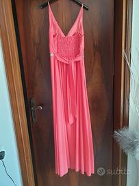vendo per cambio taglia abito elegante rosa acceso, anche da cerimonia usato una volta sola, TG 42 se interessati vendo anche set sandali e pochette modello unico in pelle argento sandali numero 39,il vestito lo vendo ha 30,00 € il set a 80,00€ Disponibile alla spedizione.