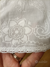 Abito bianco ragazza da cerimonia a maniche corte con cordoncino intrecciato sul d avanti che permette di regolare a secondo della taglia. Lunghezza abito dalla spalla 114 cm. Tutto le cuciture bordate in pizzo . Con sottoveste ,in cotone al 100%.l abito è stato lavato/igienizzato e stirato, pronto all uso. Eventuali altre foto disponibili. Pagato 150 euro