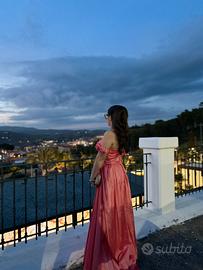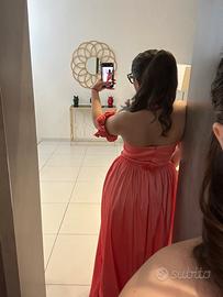 Vendo abito da cerimonia, indossato solo una volta, nuovo, color corallo con pietre colorate, compresso di copriapalle a scialle associato al vestito.