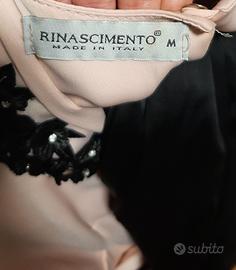 abito da cerimonia marca Rinascimento, a tuta intera, con parte alta color rosa e pantaloni neri in raso. taglia M. usato solo una volta