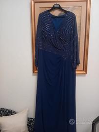 Vendo raffinato abito lungo da cerimonia colore blu notte, perfetto per matrimoni, gala o eventi serali.