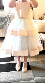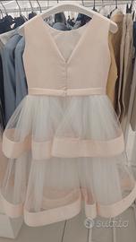 Abito Gai mattiolo nuovo color bianco pesca con inserti in raso ideale per cerimonie e prima comunione