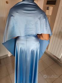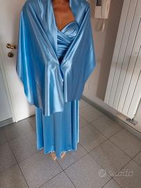 Vestito da cerimonia lungo drappeggiato in raso con spalline regolabili e coppe preformate. Veste taglia 42, con stola 48x180