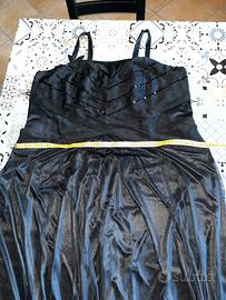 Ha le bretelline regolabili, la cerniera al lato sinistro, ha una fascia elasticizzata sul dorso effetto coulisse, la gonna ha due strati di tessuto, sopra é in tulle nero.