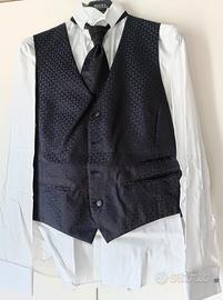 Vendo bellissimo abito da cerimonia uomo digel modello ray blu effetto elegante brillante, completo di giacca- pantalone-gilet-camicia-foulard-cravatta. Taglia 52 (vedi ultima foto) . Consegna a mano Bologna e provincia. Spedisco in tutta Italia.