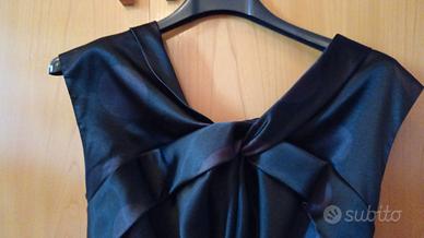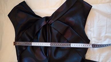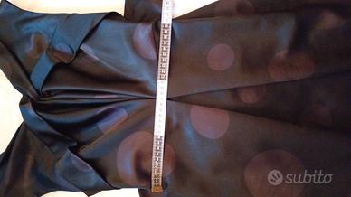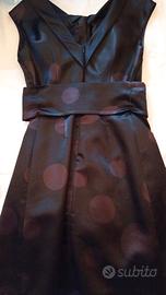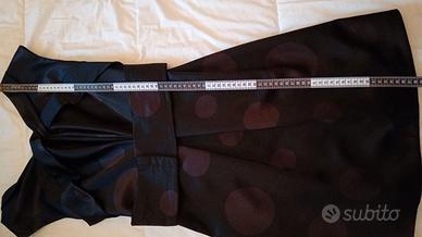 Abito cerimonia List Boutique in raso nero con pallini viola completo di stola viola. Usato solo 1 volta. Perfette condizioni. Lunghezza ginocchio.