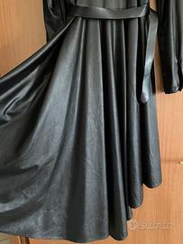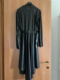 Abito chemisier in finta pelle nera Silvian Heach in taglia XS. Il vestito presenta bottoncini per tutta la lunghezza e una piccola cinta. È asimmetrico, sul dietro presenta una piccola coda più lunga della parte davanti.