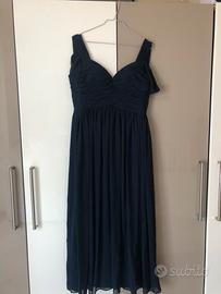 Abito cerimonia realizzato su misura blu notte con spacco laterale usato una sola volta