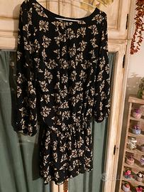 Abito nero con disegni bisnchi, balza. Taglia M