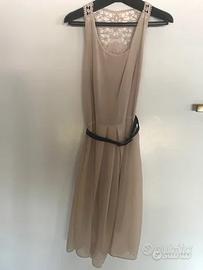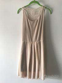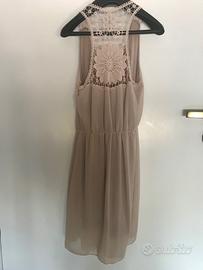Vestito in viscosa-chiffon, foderato, retro traforato ricamato, color cipria (beige)- TAGLIA SMALL