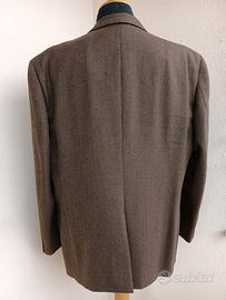 Giacca in lana di taglio classico a tre bottoni, con spacco posteriore, tessuto lavorato a spina di pesce, taglia 58, marca Facis.