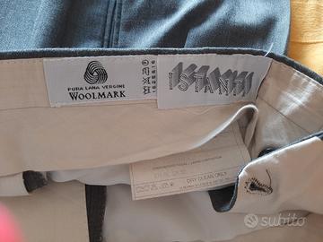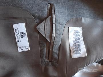 Vendo Abito completo uomo, giacca, pantaloni. Colore grigio chiaro, modello 3 bottoni, Con tre tasche posteriori, foderato internamente, Tessuto 100% pura lana vergine , taglia pantalone e giacca 54 - lavato in tintoria