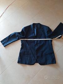 Elegante abito completo uomo puro lino blu. Rifinito molto bene: tre tasche interne nella giacca, pantaloni parzialmente foderati e giacca completamente foderata. Come nuovo usato solo una volta ad una cerimonia. .Le misute dell'abito sono le seguenti: Giacca: spalle cm. 53, ascelle cm. 68, vita appena sopra le tasche cm. 67, maniche cm. 72. Pantaloni: vita cm.119/120, lunghezza ( presa davanti dalla vita al bordo) cm 123. La piega dei pantaloni è stata fatta da una sarta chebha messo anche il batti tacco. Ci sono altri cm. 5 di stoffa nei pantaloni per allungarli Tessuto di alta qualità.