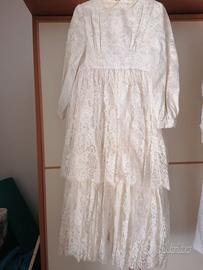 Elegantissimo abito comunione creato da sapienti mani di una sarta professionista. Sfruttabile anche per rievocazioni storiche. Indossato 1 sola volta e ben conservato. Veste bimba 8/9 anni