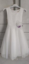 abito da comunione bambina con busto in pizzo e gonna in tulle e bolerino colore glicine ,anni 10.