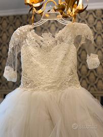 Abito da comunione sartoriale, con tutte le acconciature vicino e in più anche un piccolo pettine con sopra dei fiori