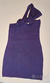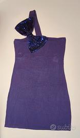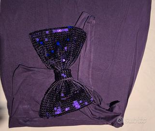 Abito viola di media lunghezza. Super particolare, con grande fiocco paiettato