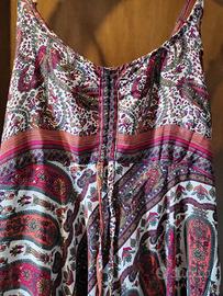 Per cambio tg. vendo abito molto fresco e comodo in fantasia con scollatura regolabile da laccetti, spalline regolabili e sul retro stoffa arricciata