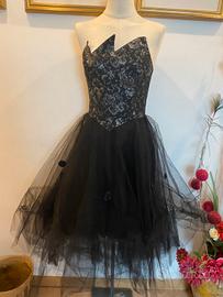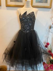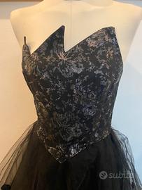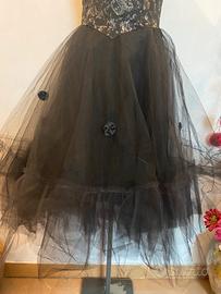 Abito con corpetto in tessuto operato e tulle con fuori applicati, foderato internamente, tg m