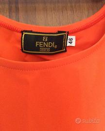 Abito/copricostume Fendi, colori arancione e marrone, elasticizzato (tessuto in foto), taglia 46 (foto) ma sembra più piccolo.
