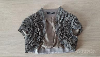 Il modello, corto con arricciature orizzontali nella parte superiore, è completo di coprispalle aperto e lavorato.