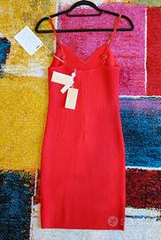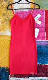 vestito a tubino, in maglia, maglia leggera, tinta unita, brand logo, scollatura profonda, senza maniche, senza tasche, lavare in lavatrice o a secco, non candeggiare, non asciugare in asciugatrice