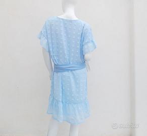 #Short blue dress with ruffles and poppers, + scarf, sash, blue