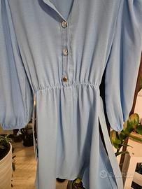 Abito azzurro manica lunga, con cintura in vita staccabile.
