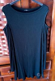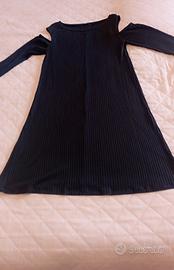 abito mini dress nero - tessuto a costine - scollo cold shoulder - maniche lunghe - silhouette ad A