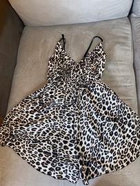 Utilizzato per 2 uscite lungomare. La gonnellina ha un’attaccatura sotto che la rende a pantalone, ma con effetto minigonna. Molto leggera, adatta a periodi estivi. Colore leopardato. Materiale: 97% poliestere e 3% elastam (foto etichetta fatta ad un’altro prodotto uguale a questo, solo di colore nero, che trovate sempre nei prodotti che ho messo in vendita).