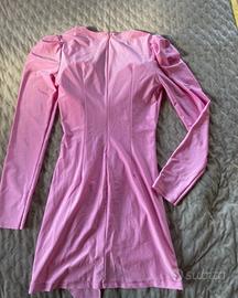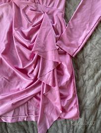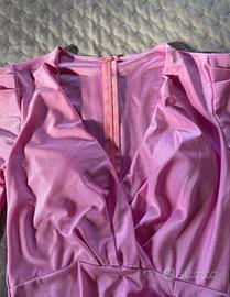 Abito a lunghezza ginocchio colore fucsia, taglia unica preso su RaBoutique. Usato una sola volta ma si è un po' rovinato sul dietro (ultima foto). Coppe già integrate nel vestito, zip perfettamente funzionante, non presenta scuciture.