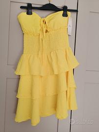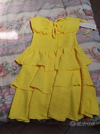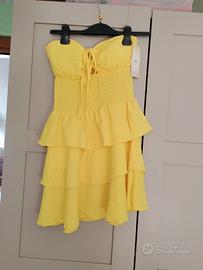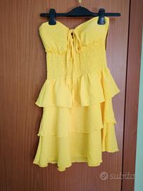 Abito corto Giallo con Brillantini Abito corto dettagli scinitillanti. Scollo a cuore con laccetti. corpetto elasticizzato. Gonne a balze Tessuto Leggero