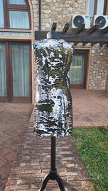 Abito corto Le Coeur Twinset in paillettes argento perfetto per una serata speciale Fashion il dettaglio sulla spalla sinistra dei tre bottoncini che si possono aprire E’ nuovo senza cartellino..lo vendo perché è una 38 ma veste grande
