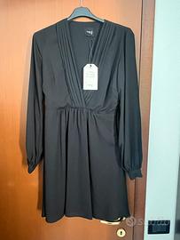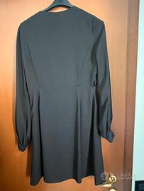 abito corto nero firmato Mery S, assolutamente nuovo, mai indossato e con cartellino originale. • Profondo scollo a V con elegante lavorazione a pieghe (plissé) sul busto che valorizza il décolleté. • Maniche lunghe leggermente a palloncino con polsino elasticizzato. Punto vita segnato che scende morbido sulla gonna.