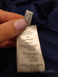 Vendo abito corto originale PINKO taglia 46. Il vestito è morbido e caratterizzato da tante pieghe che rendono l abito elegante e allo stesso tempo sbarazzino. È un abito venduto come da cerimonia. Il colore predominante sono le sfumature del blu e del celeste con un sotto top color cipria. I laccetti doppi sono color cipria e nero con una cascata di diamantini e strass argento che danno luce alle spalle e al vestito.