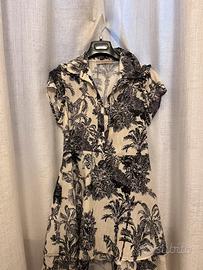 Vendo abito corto, taglia XS (40) marchio Rinascimento. Lunghezza sopra al ginocchio, gonna leggermente ampia per presenza di due strati di tessuto, scollo con bottoni, maniche corte. Elastico altezza vita solo sulla schiena.