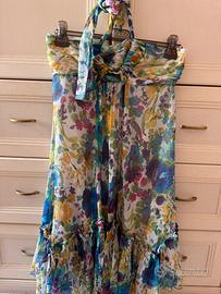 Bellissimo vestito leggero, corto, comodo e super elegante, perfetto per le serate estive e gli eventi colorati! presenta fodera interna in seta, mentre il fuori è in acetato. Ha anche delle balze che gli danno movimento. USATO UNA SOLA VOLTA, lo vendo solamente perché ho perso peso e mi sta grandino.