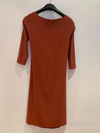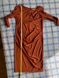 Abito Cos ruggine con doppio drappeggio che dona ottima vestibilità, elegante e versatile, tg 38 lunghezza cm 105, larghezza sotto ascelle cm 43, larghezza fianchi cm 43, maniche a tre quarti
