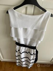 Abito ideale per cerimonie, o serate . Tg 44 . Bianco con gonna a balze e pizzo nero , corto . Usato solo una serata e portato in pulitura, pari al nuovo !