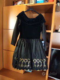 Abito in perfette condizioni con corpino in velluto nero e sotto in tulle e pizzo. Completo di spilla. L'abito è stato indossato solo una volta