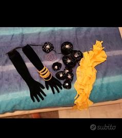 Veramente eccezionale!!! Possibilità di cucire nastri di raso gialli sulla Gonna e fiori di velluto neri. In dotazione anche guanti lunghi neri di velluto.