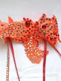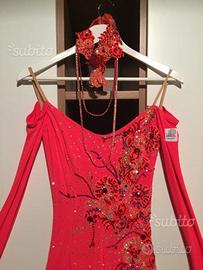 Abito da ballo standard lungo , atelier de Paolis ,con strass e giro collo coordinato con filamenti ricoperti di strass che ricadono lungo la schiena ,veste 44-46 #abito #ballo #standard #strass #danza #dePaolis #vestiti ballo