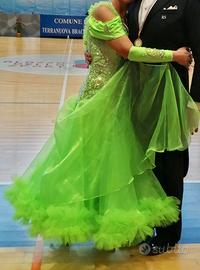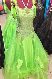 Abito da ballo “standard” per categorie B1-A, con accessori (collana e manicotti). Taglia 42-44.