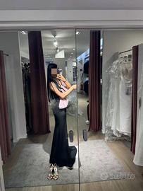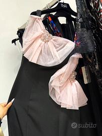 Abito lungo nero con due fiocchi di fiori rosa🌸, indossata solo una volta per una cerimonia tutto nuovissima, per informazioni e taglie scrivetemi pure🥰