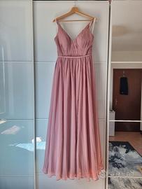 Abito da damigella Azazie nuovo con cartellino. Colore Rosa antico. Spacco laterale. Zip sulla schiena. Bretelline regolabili Taglia S IT40 EU36