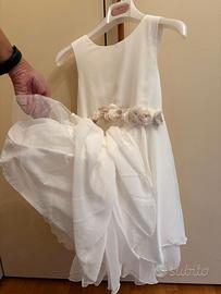 Abito da cerimonia Mimilù bambina color bianco opaco. Misura 10 anni, larghezza 28 cm da esterno spalline e lunghezza 70 cm. Utilizzato una sola volta per Comunione di mia figlia. Gonna in tre strati (vedi foto) e cintura removibile. Come nuovo.