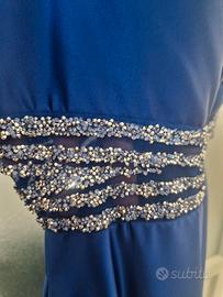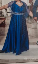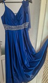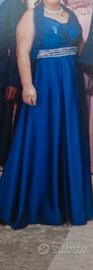 Abito lungo in raso blu elettrico,completo di stola,coppe interne,vita trasparente impreziosita da strass Argento,utilizzato una sola volta.