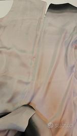 Abito bicolor viola rosato e nero in seta da cerimonia nuovo, mai indossato, taglia 44 con cerniera a metà sulla schiena e piccola cerniera laterale.
